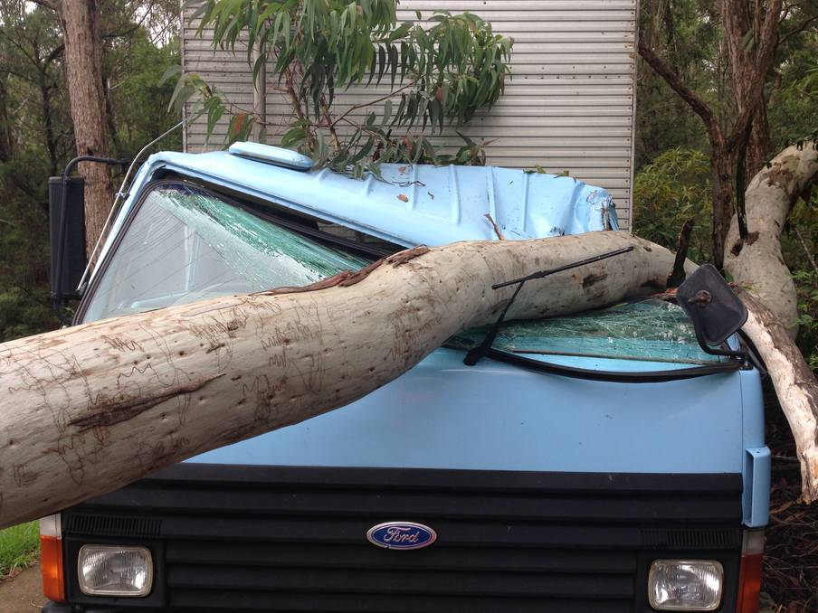 Near miss: Hills SES volunteer Malcolm Liston captured these images of the fallen tree branch in Annangrove Road, Annangrove.